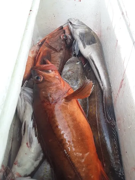 Bright, orange‑gold canary rockfish show up on these structure drifts from time to time, adding some color to the lineup. If you like the action and variety of the regular bottom program but want a shot at heavier grades, this is where you go.